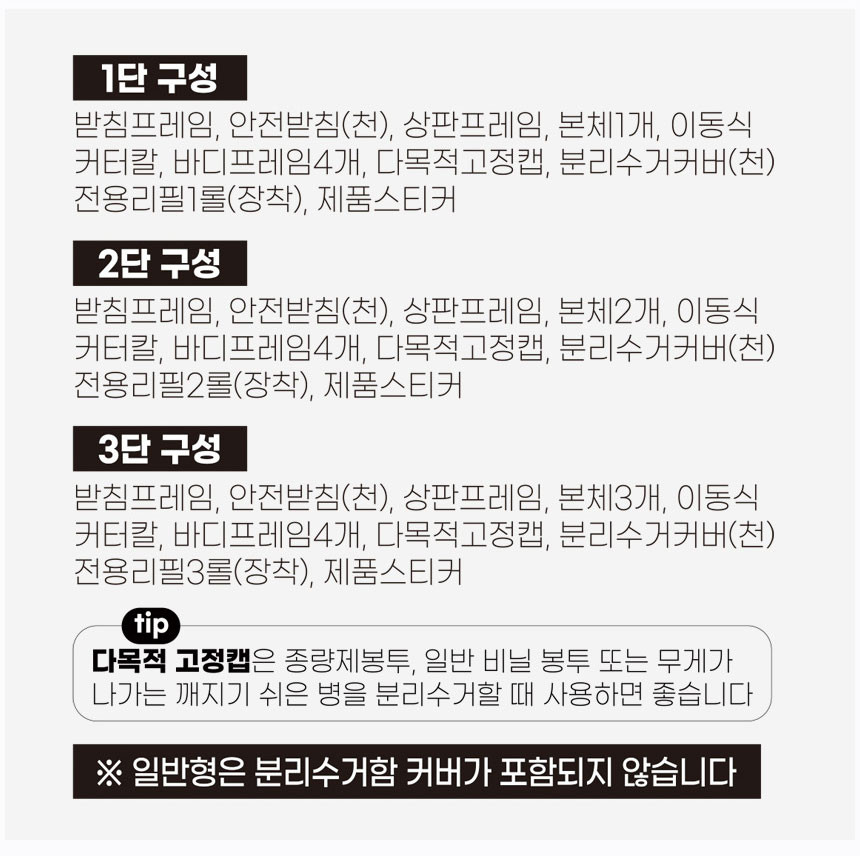 ※ 기존 분리수거함 3단에서 문이 같이 열리는 문제가 개선되어 더욱 편리해 졌습니다.
