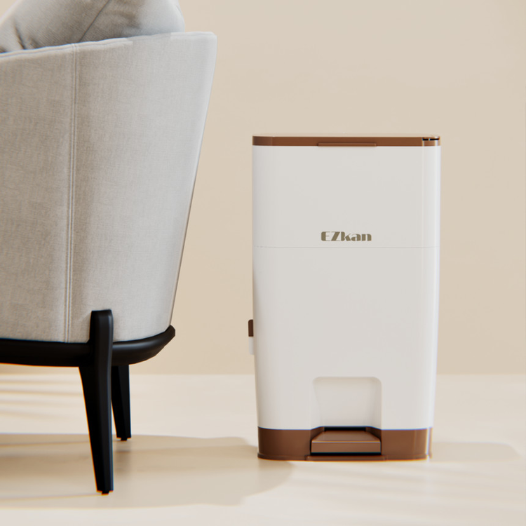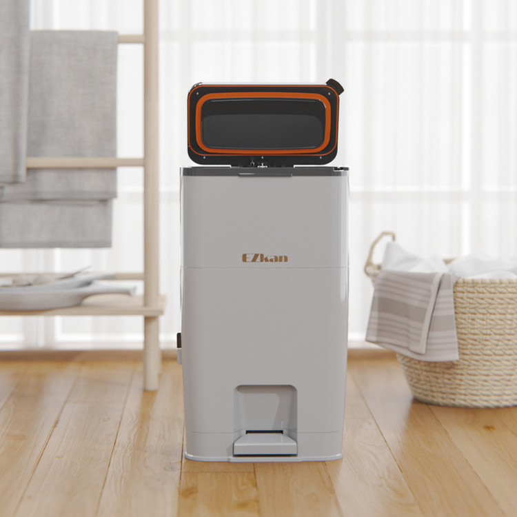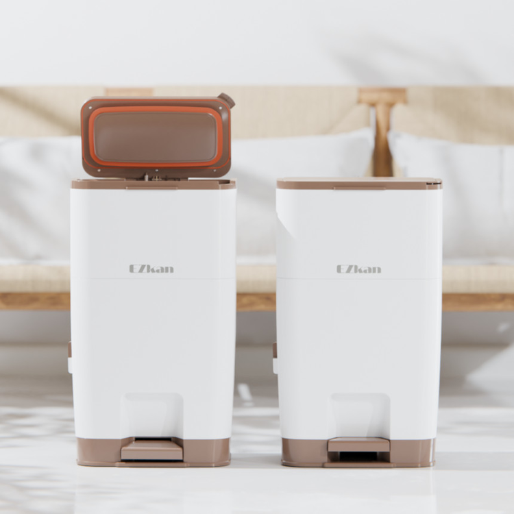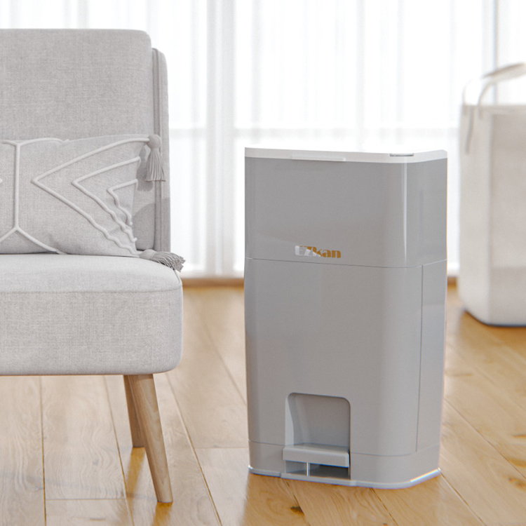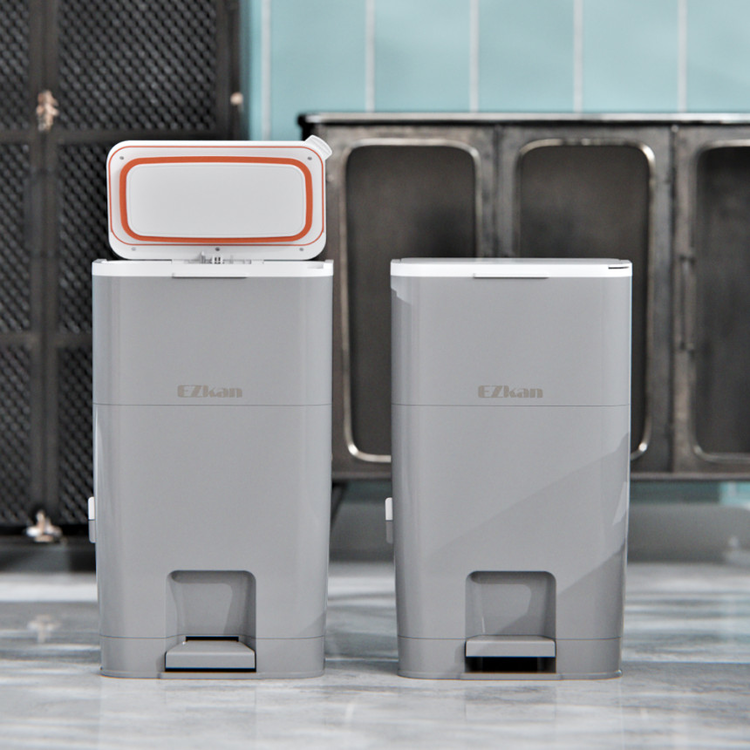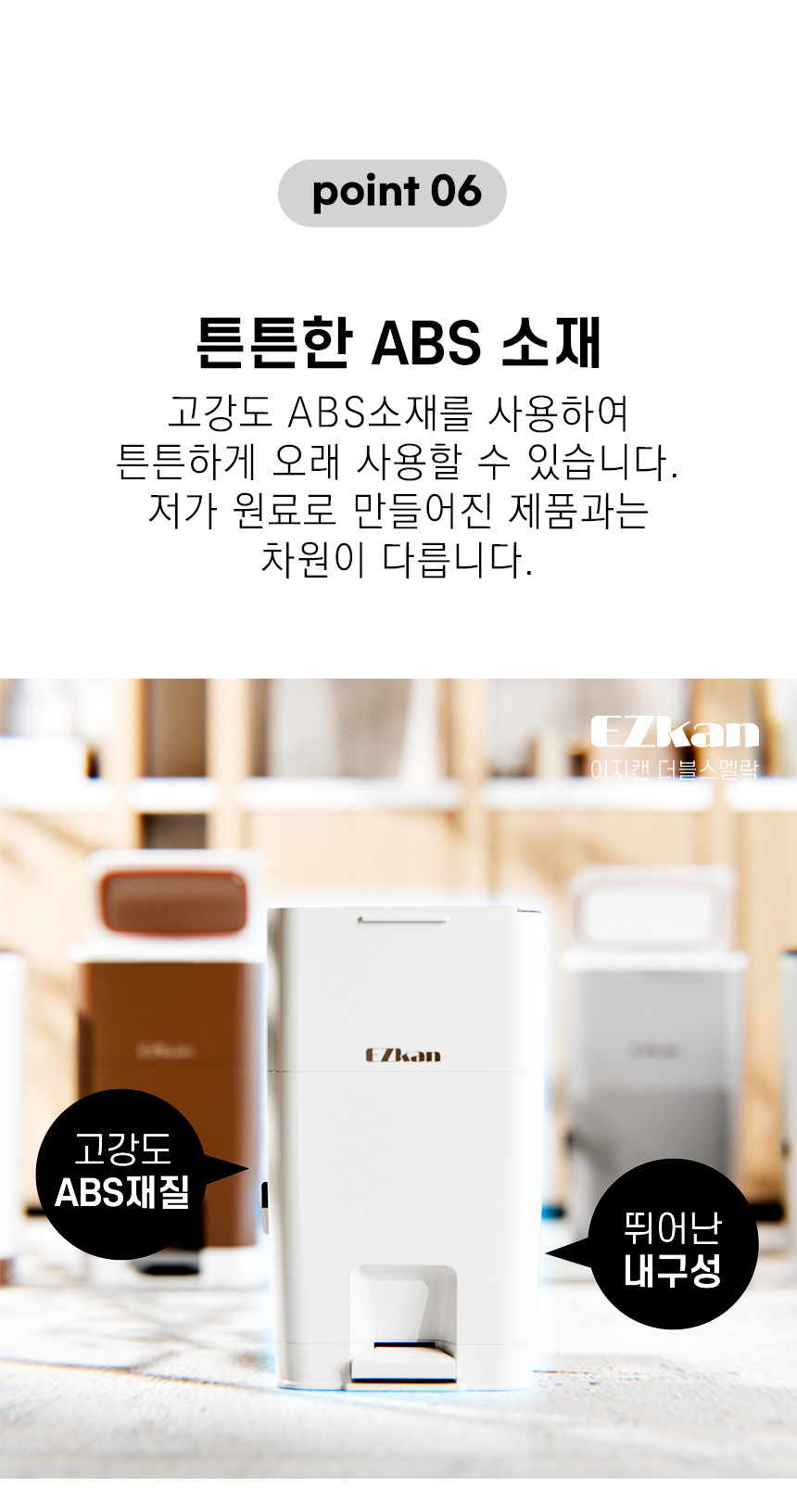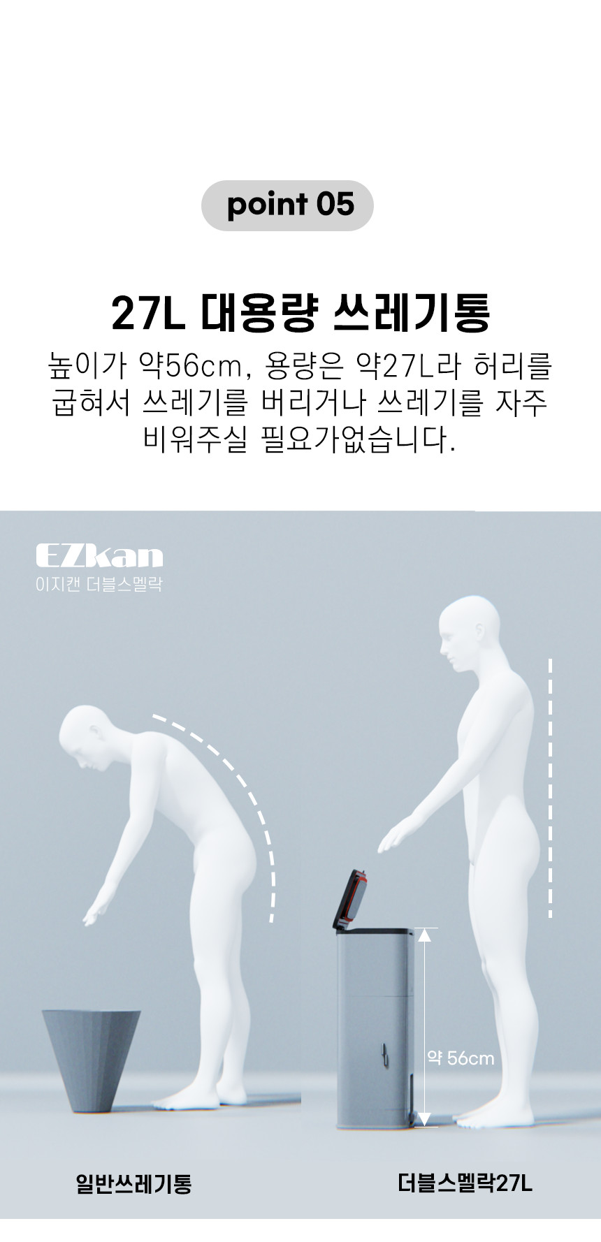 이지캔리필 한번 장착으로 2~3개월 비닐교체 없이 사용 종량제 봉투 10L~ 20L까지 완벽하게 호환 와이드 더블스멜락 구조로 완벽한 냄새 차단