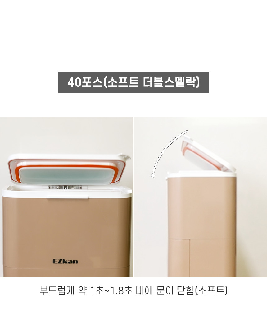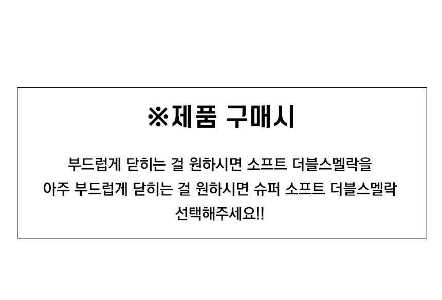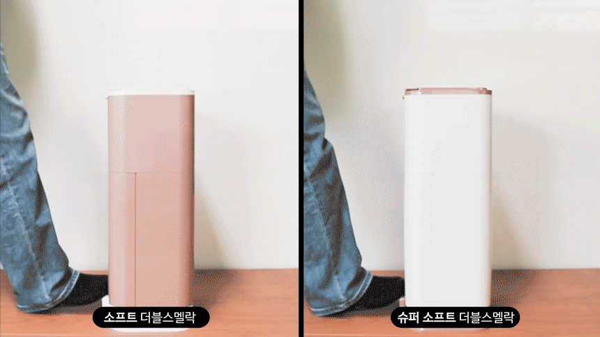 부드럽게 닫히는 ①소프트 더블스멜락, 더 부드럽게 닫히는 ②슈퍼 소프트 더블스멜락 2가지 종류가 있어 내게 맞는 쓰레기통을 선택하시면 됩니다.