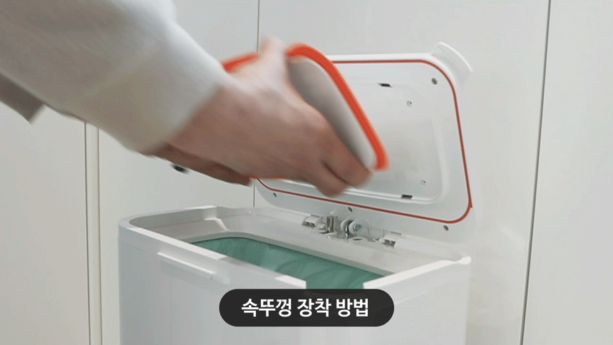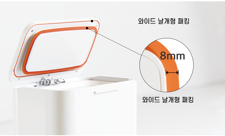 특허받은 8mm 와이드패킹 속뚜껑구조로 쓰레기통 본체와 속뚜껑과의 밀착 되는 면을 확장~