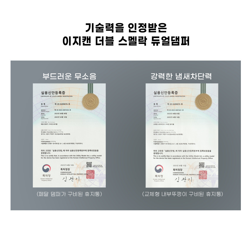이지캔 더블 스멜락 쓰레기통은 들뜸 현상이 없어 냄새를 강력하게 차단 해 줍니다.