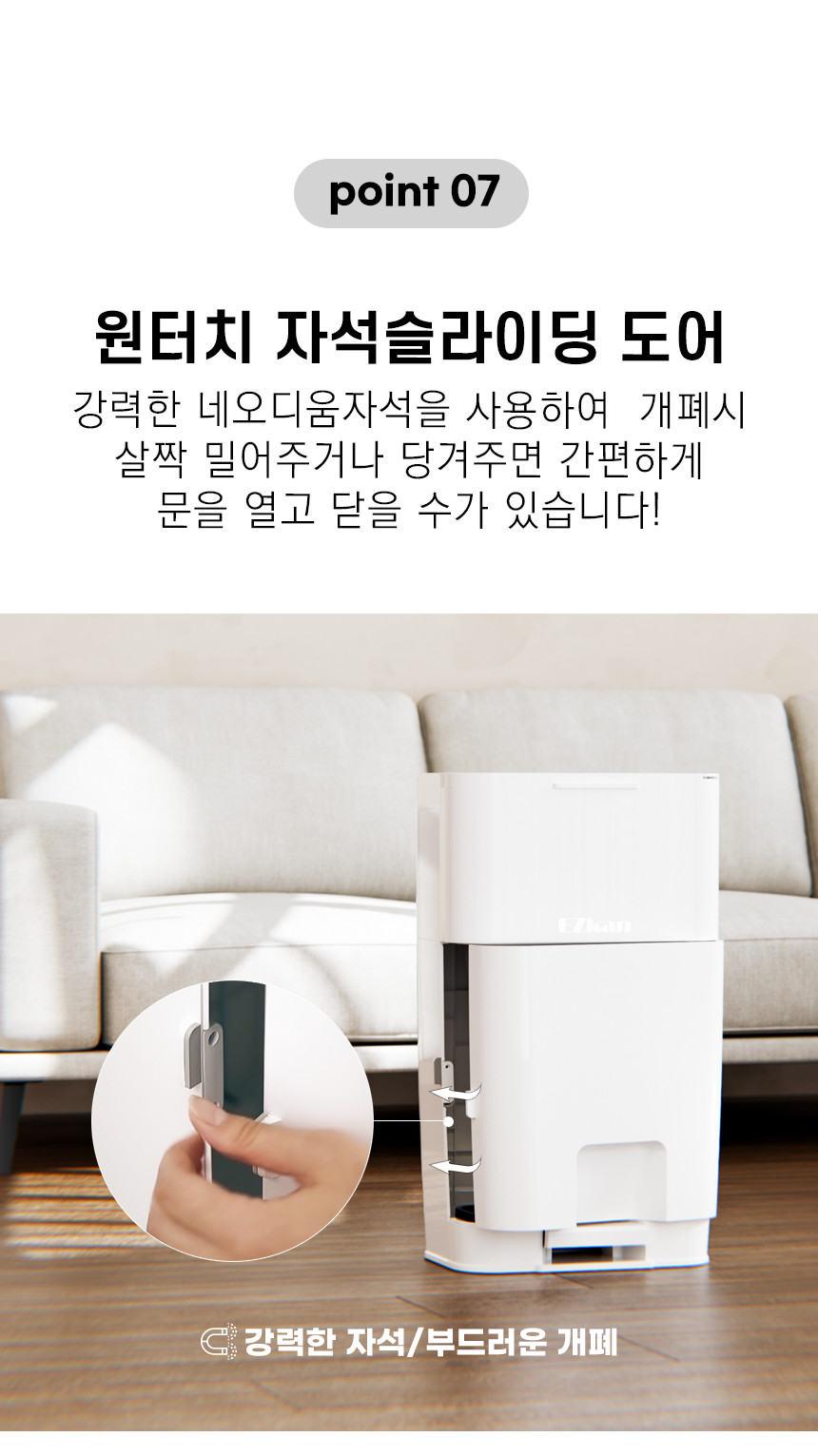 이지캔 더블스멜락제품은 강력한 네오디옴 자석을 사용한 슬라이딩 도어방식이라 개폐가 매우 편리합니다.